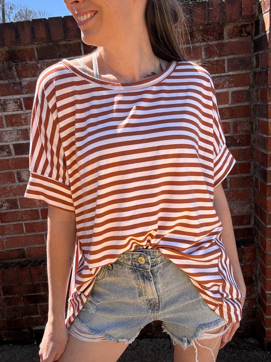 Sold outWhite + Brown Stripe Top