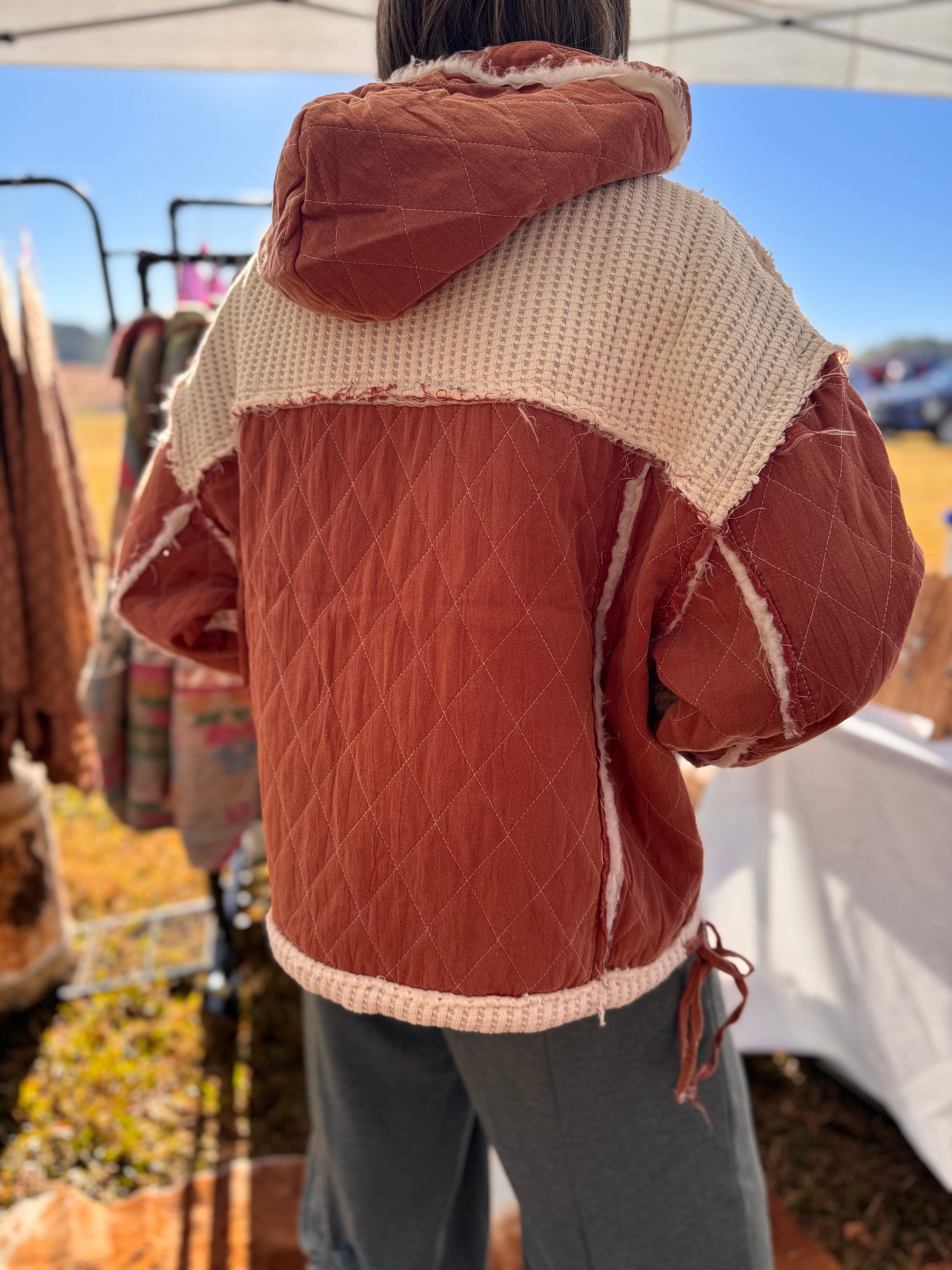 Designed in ballon style sleeve relaxed fit hoodie top in quilting with thermal patch, front pocket, embroidery point, adjustable bottom opening detail, vintage wash, solid color.